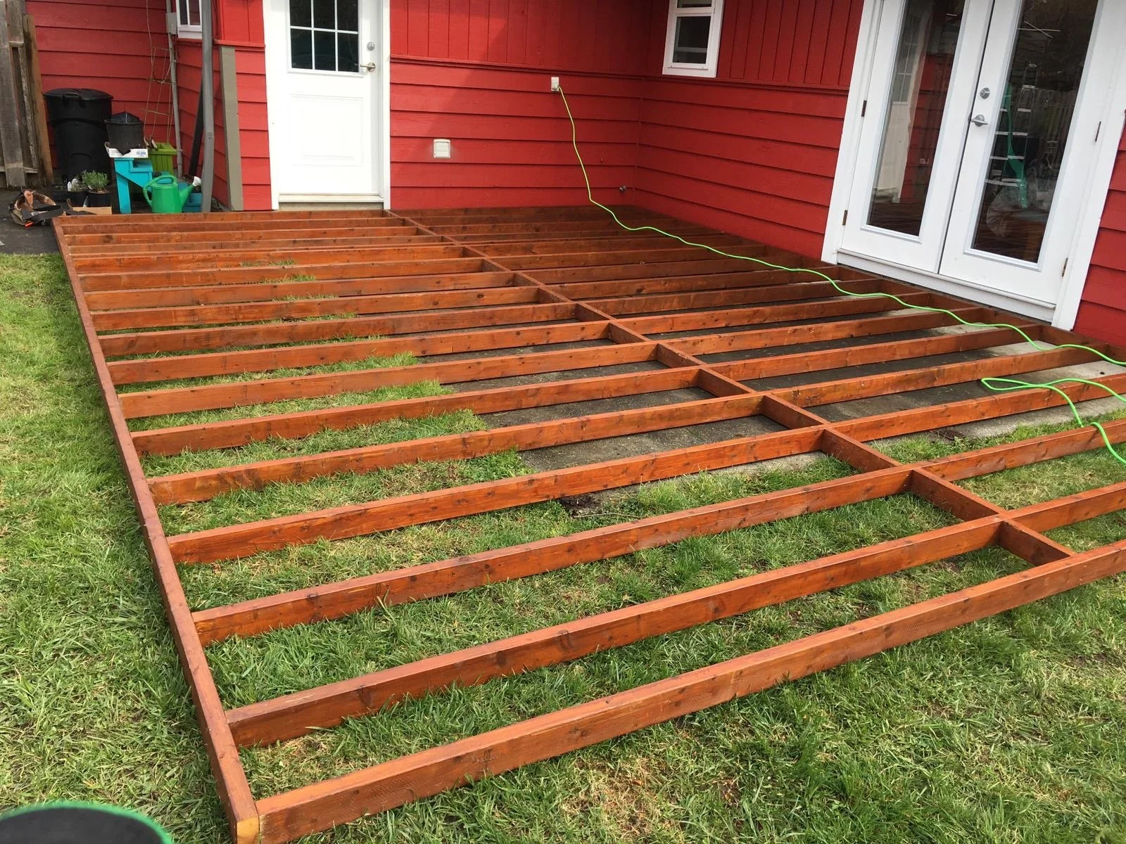 Building a frame! Look how much bigger it's going to be than the old concrete patio!