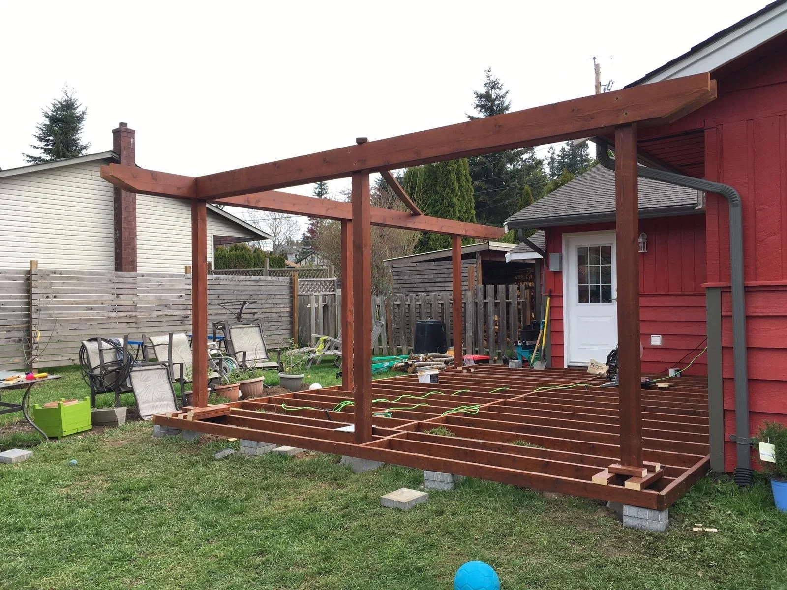 The frame is in place, time to build and put up the pergola!